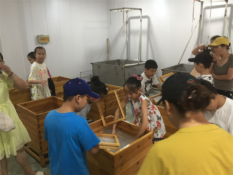2021年8月28日,暑假的結(jié)尾,再來(lái)一波研學(xué)體驗(yàn),小朋友們學(xué)習(xí)如何撈紙,在實(shí)踐中體驗(yàn)紙的生產(chǎn)不易,學(xué)會(huì)珍惜愛護(hù)用紙